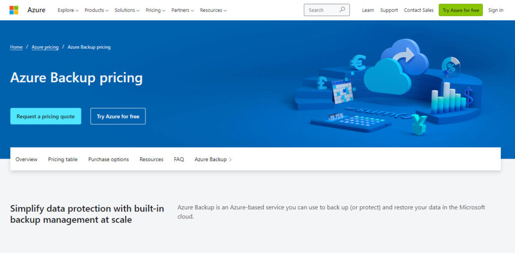 - Öncelikle diğer birçok Azure servisinde göremeyeceğiniz en büyük maliyet faktörü farkını size aktararak başlayacağım. Azure Backup’da kullandığınız belirli veri ve depolama miktarına bakılmaksızın sabit bir ücret alınır.