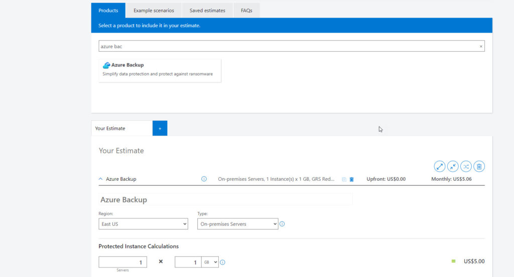 Azure fiyatlamasında en çok kullandığımız, en önemli araç olan Azure Pricing Calculator üzerinden de Azure Backup servisi dahil birçok servisle ilgili fiyatlandırma tahminlemesi yapabilirsiniz.