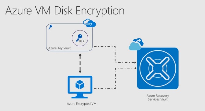 Azure Disk Encryption, Azure sanal makinelerinde bulunan işletim sistemi ve veri disklerini şifrelemek için kullanılan bir güvenlik çözümüdür. Windows sistemlerde BitLocker, Linux sistemlerde ise dm-crypt teknolojisini kullanarak disk üzerindeki verileri koruma altına alır.