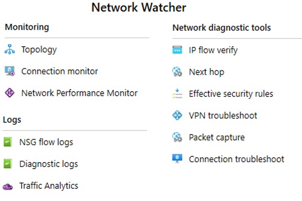 TAGs:IP Flow Verify, Next Hop, VPN Diagnostics, NSG Flow Logs, Connection troubleshoot,Packet Capture,
