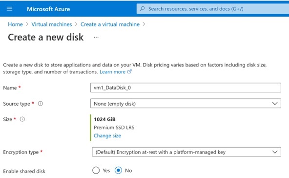 - Yönetilen disk oluştur sayfasında, disk için bir ad yazılır ve diğer ayarları gerektiği gibi yapabilirsiniz. Sonrasında oluştur seçilir.