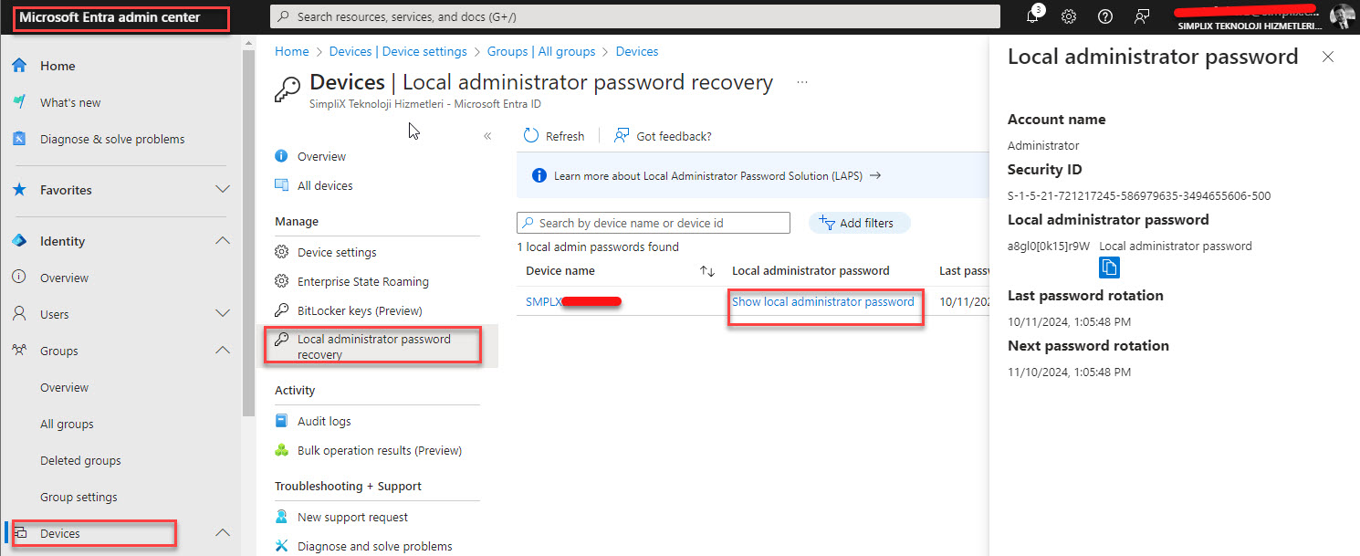 Kurulum için önce Entra yönetim merkezinde LAPS özelliğini tenant seviyesinde açmanız gerekir: